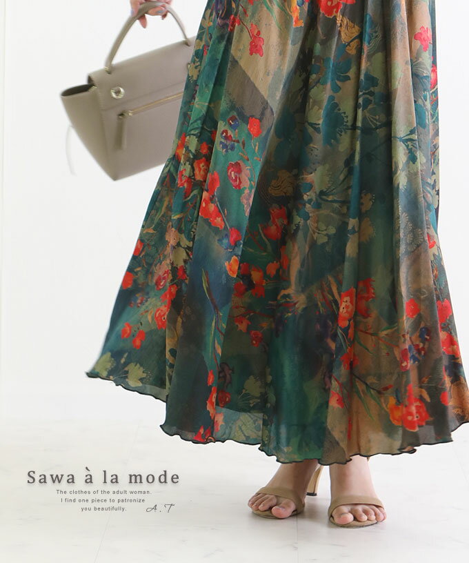 色鮮やかでシックなボタニカル柄フレアスカート レディース ファッション ボトムス スカート ロング フレア 青 ブルー 大人可愛い 40代 レディースファッション 50代女性 ファッション 60代 ミセスファッション サワアラモード sawa a la mode otona【8月23日20時販売新作】