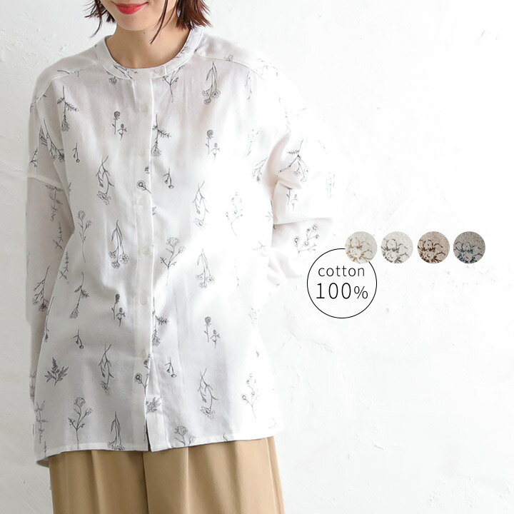 大きいサイズ レディース チュニック ボタニカル刺繍チュニック ボタニカル柄 刺繍 花柄 コットン 長袖 スモック クルーネック フレア Aライン ロング トップス ボタン ルーム 柄服 春新作 春服 秋服 LL 2L 3L 4L 5L アイボリー ブラウン ブルーグレー ゴールドジャパン
